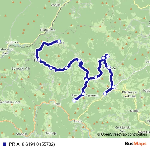 See why over 2 million users trust and consider busmaps.com as the best public transport website. busmaps gives you Cerkno Buses suggested routes, real-time bus tracker, line route maps in Cerkno, and helps to find the closest PR A18 6194 0 (55702) bus stops near you. No internet available? Download an offline PDF map and bus schedule for the PR A18 6194 0 (55702) bus to take on your trip.