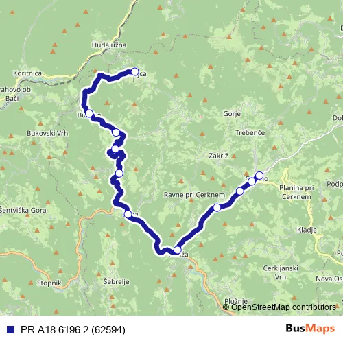 The first stop of the PR A18 6196 2 (62594) bus route is Cerkno and the last stop is