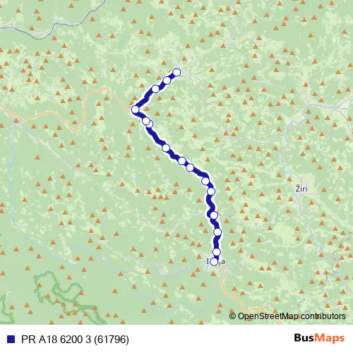 The first stop of the PR A18 6200 3 (61796) bus route is Idrija and the last stop is