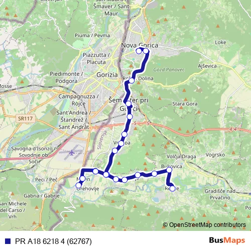 The first stop of the PR A18 6218 4 (62767) bus route is Renče and the last stop is