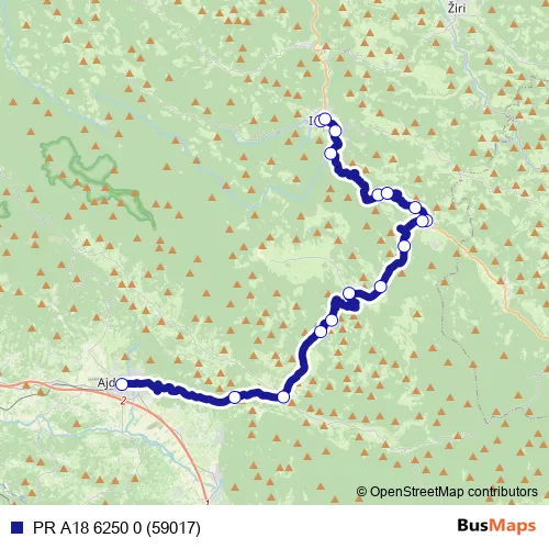 The first stop of the PR A18 6250 0 (59017) bus route is Idrija and the last stop is