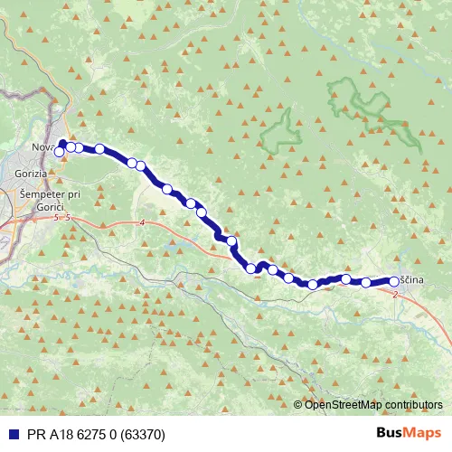 The first stop of the PR A18 6275 0 (63370) bus route is Ajdovščina and the last stop is