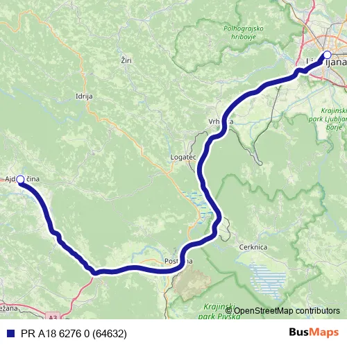 The first stop of the PR A18 6276 0 (64632) bus route is Ljubljana Ap and the last stop is