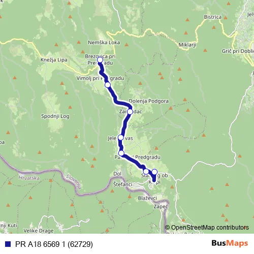 Brezovica pri Predgradu. PR A18 6569 1 (62729) (PR A18 6569 1 (62729)) is operational during on weekdays.