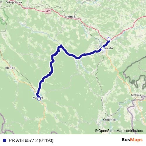 The first stop of the PR A18 6577 2 (61190) bus route is Sevno and the last stop is Kočevje. PR A18 6577 2 (61190) (PR A18 6577 2 (61190)) is operational during on weekends.