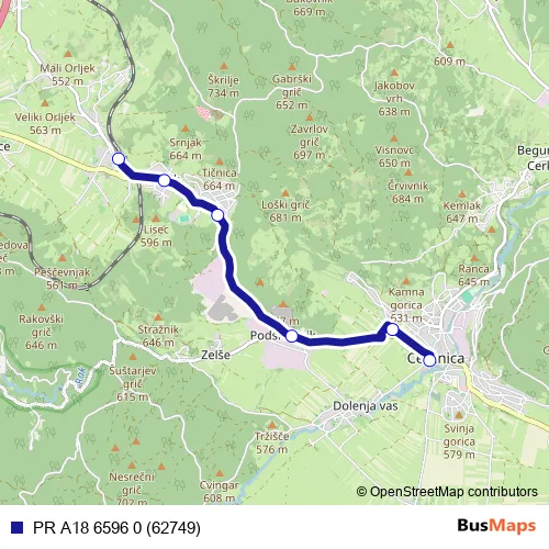 The first stop of the PR A18 6596 0 (62749) bus route is Rakek Žp and the last stop is Cerknica. PR A18 6596 0 (62749) (PR A18 6596 0 (62749)) is operational during on weekdays.