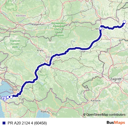 The first stop of the PR A20 2124 4 (60458) bus route is Piran and the last stop is Murska Sobota Ap. PR A20 2124 4 (60458) (PR A20 2124 4 (60458)) is operational during everyday.