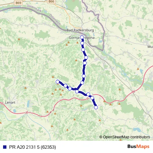 The first stop of the PR A20 2131 5 (62353) bus route is G.Radgona and the last stop is Sv.Jurij ob Ščavnici. PR A20 2131 5 (62353) (PR A20 2131 5 (62353)) is operational during on weekdays.