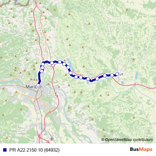The first stop of the PR A22 2150 10 (64932) bus route is Maribor Ap and the last stop is