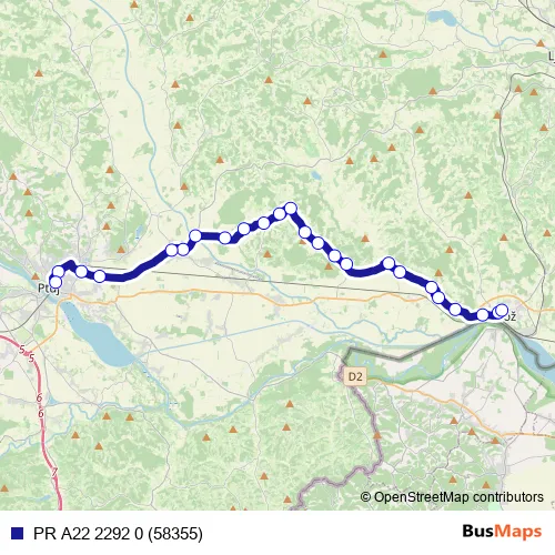Arriva d.o.o. PR A22 2292 0 (58355) bus Route Map
