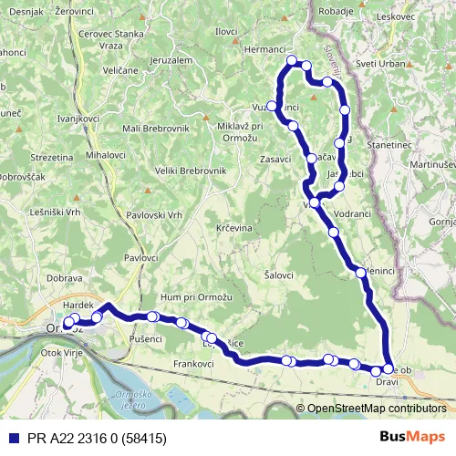 Ormož. PR A22 2316 0 (58415) (PR A22 2316 0 (58415)) is operational during on weekdays.