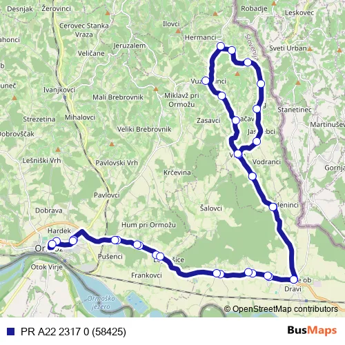 Ormož. PR A22 2317 0 (58425) (PR A22 2317 0 (58425)) is operational during on weekdays.