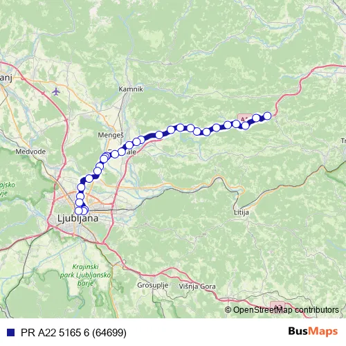 The first stop of the PR A22 5165 6 (64699) bus route is Trojane and the last stop is