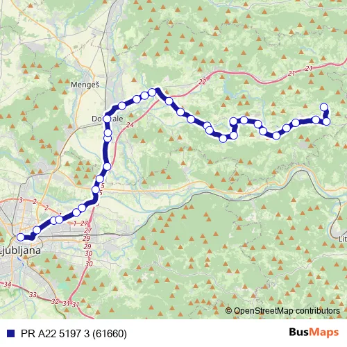 The first stop of the PR A22 5197 3 (61660) bus route is Ljubljana Ap and the last stop is