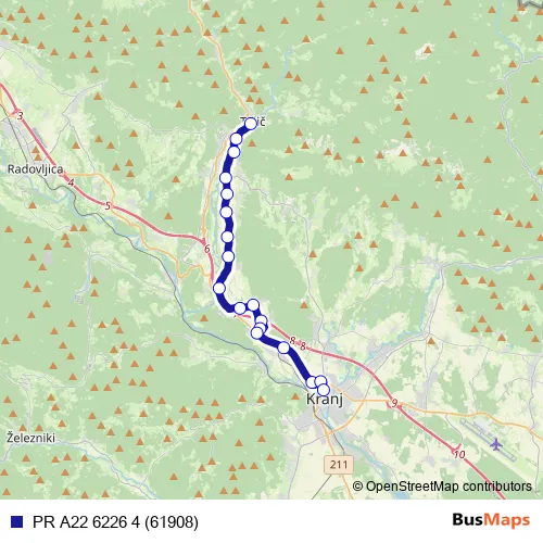 Bus PR A22 6226 4 (61908) in Naklo: Stops & Timetable