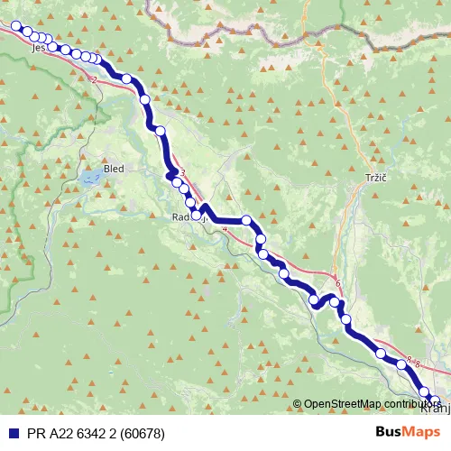 The first stop of the PR A22 6342 2 (60678) bus route is Kranj Ap and the last stop is Jesenice bolnica. PR A22 6342 2 (60678) (PR A22 6342 2 (60678)) is operational during on weekdays.