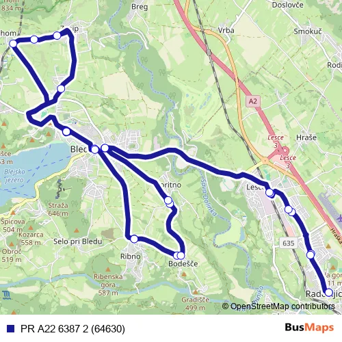 Radovljica. PR A22 6387 2 (64630) (PR A22 6387 2 (64630)) is operational during on weekdays.