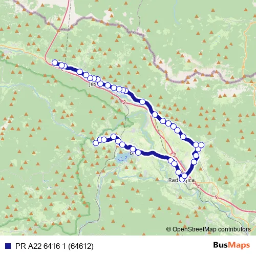 The first stop of the PR A22 6416 1 (64612) bus route is Krnica and the last stop is Hrušica Belo Polje. PR A22 6416 1 (64612) (PR A22 6416 1 (64612)) is operational during on weekdays.