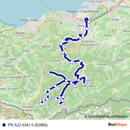 Koper. PR A22 8341 0 (62985) (PR A22 8341 0 (62985)) is operational during on weekdays.