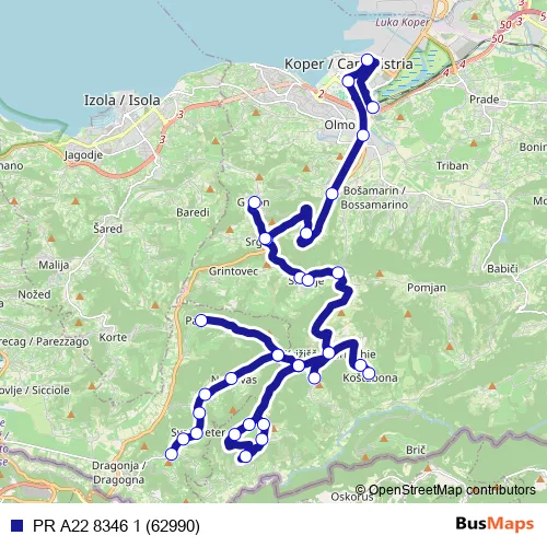 Koper. PR A22 8346 1 (62990) (PR A22 8346 1 (62990)) is operational during on weekdays.