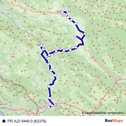 Sežana. PR A22 8448 0 (62379) (PR A22 8448 0 (62379)) is operational during on weekdays.
