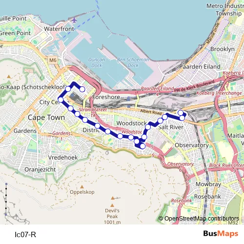See why over 2 million users trust and consider busmaps.com as the best public transport website. busmaps gives you Cape Town Buses suggested routes, real-time bus tracker, line route maps in Cape Town, and helps to find the closest Ic07-R bus stops near you. No internet available? Download an offline PDF map and bus schedule for the Ic07-R bus to take on your trip.