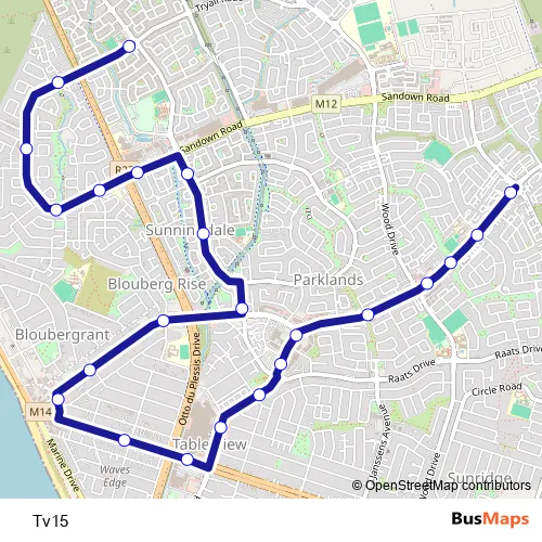 See why over 2 million users trust and consider busmaps.com as the best public transport website. busmaps gives you Cape Town Buses suggested routes, real-time bus tracker, line route maps in Cape Town, and helps to find the closest Tv15 bus stops near you. No internet available? Download an offline PDF map and bus schedule for the Tv15 bus to take on your trip.