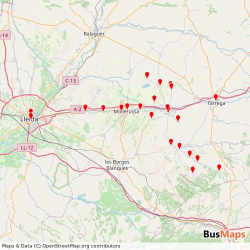 Autocars del Pla, Sl operates in the following cities: Castellnou de Seana, Sidamon, Vallbona de les Monges, Vilanova de Bellpuig.