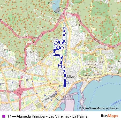 Bus 17 - Alameda Principal - Las Virreinas - La Palma in Malaga: Stops & Timetable