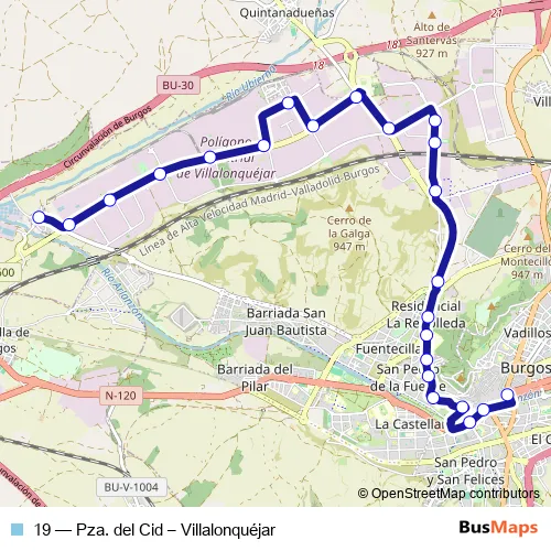 Barrio de Villalonquéjar. 19 (Pza. del Cid – Villalonquéjar) is operational during on weekdays.