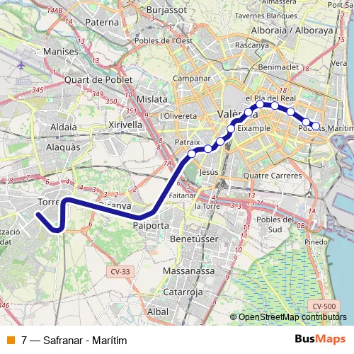 See why over 2 million users trust and consider busmaps.com as the best public transport website. busmaps gives you Valencia Trams suggested routes, real-time bus tracker, line route maps in Valencia, and helps to find the closest 7 tram stops near you. No internet available? Download an offline PDF map and bus schedule for the 7 tram to take on your trip.