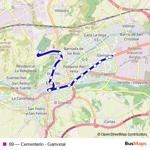 Click here to view the nearest 89 - Cementerio - Gamonal bus stop.