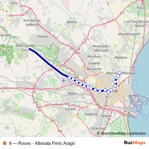 9 (Roses - Alboraia Peris Aragó) Tram in Valencia