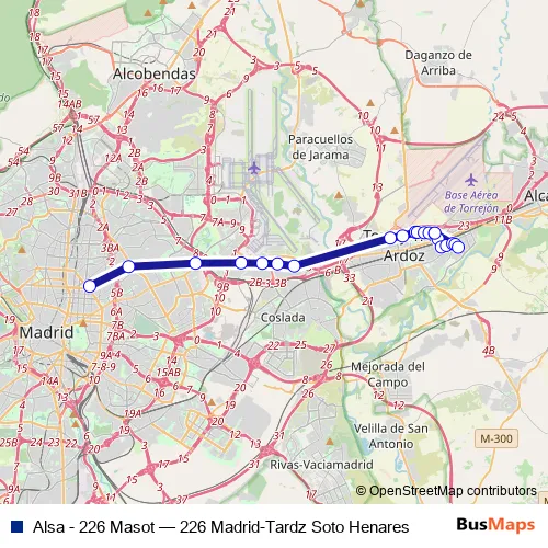 Bus Alsa - 226 Masot - 226 Madrid-Tardz Soto Henares: Full Schedule in Torrejon de Ardoz