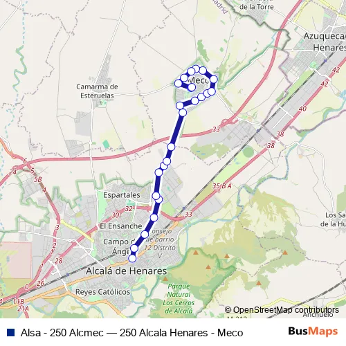 Bus Alsa - 250 Alcmec - 250 Alcala Henares - Meco in Meco: Stops & Timetable