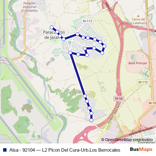 Click here to view the nearest Alsa - 92104 - L2 Picon Del Cura-Urb.Los Berrocales bus stop.