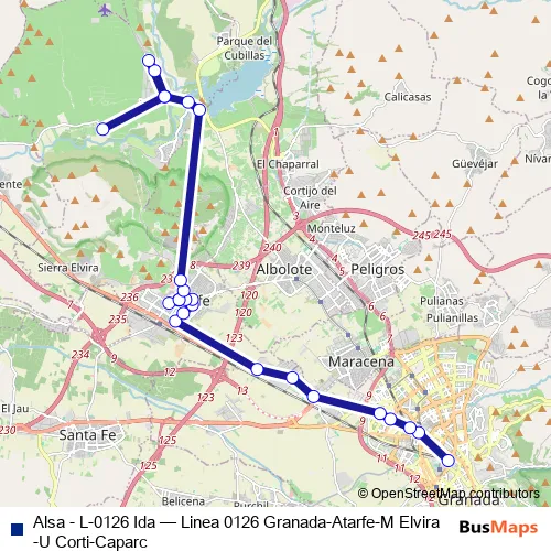 Click here to view the nearest Alsa - L-0126 Ida - Linea 0126 Granada-Atarfe-M Elvira-U Corti-Caparc bus stop.