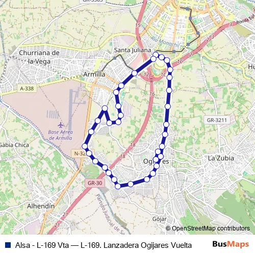 Click here to view the nearest Alsa - L-169 Vta - L-169. Lanzadera Ogijares Vuelta bus stop.