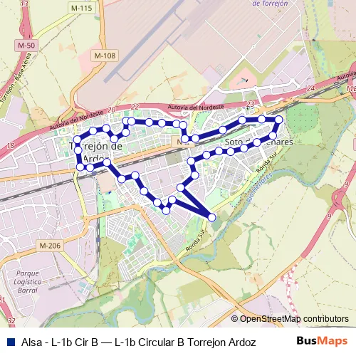 See why over 2 million users trust and consider busmaps.com as the best public transport website. busmaps gives you Torrejon de Ardoz Buses suggested routes, real-time bus tracker, line route maps in Torrejon de Ardoz, and helps to find the closest Alsa - L-1b Cir B bus stops near you. No internet available? Download an offline PDF map and bus schedule for the Alsa - L-1b Cir B bus to take on your trip.