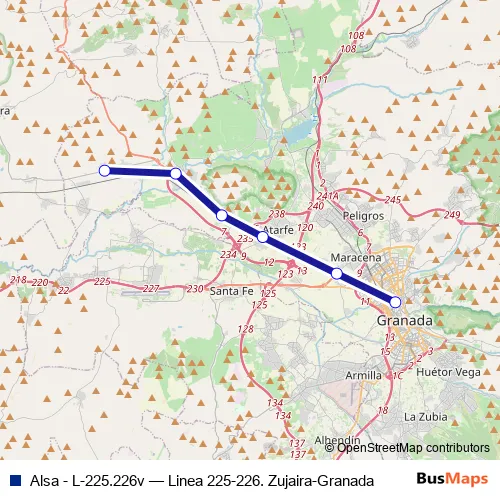 Bus Alsa - L-225.226v - Linea 225-226. Zujaira-Granada in Pinos Puente: Stops & Timetable
