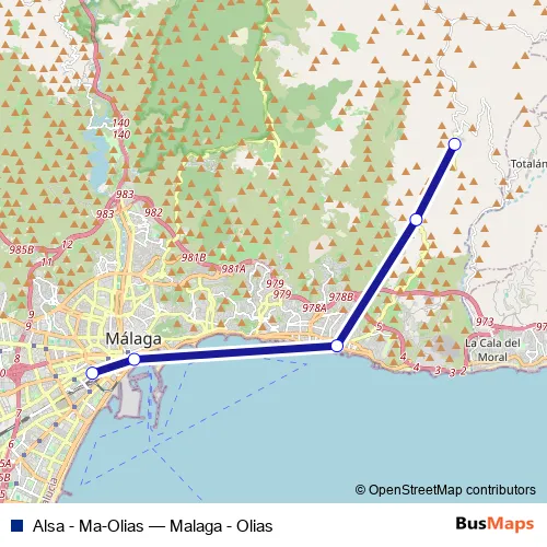 See why over 2 million users trust and consider busmaps.com as the best public transport website. busmaps gives you Malaga Buses suggested routes, real-time bus tracker, line route maps in Malaga, and helps to find the closest Alsa - Ma-Olias bus stops near you. No internet available? Download an offline PDF map and bus schedule for the Alsa - Ma-Olias bus to take on your trip.