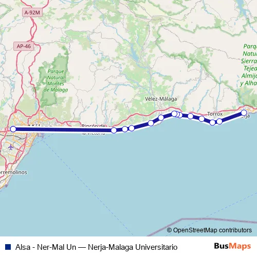 Click here to view the nearest Alsa - Ner-Mal Un - Nerja-Malaga Universitario bus stop.