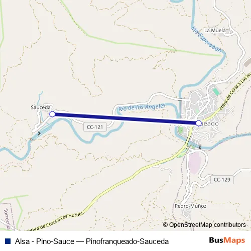 The first stop of the Alsa - Pino-Sauce bus route is Pinofranqueado and the last stop is Sauceda. Alsa - Pino-Sauce (Pinofranqueado-Sauceda) is operational during everyday.