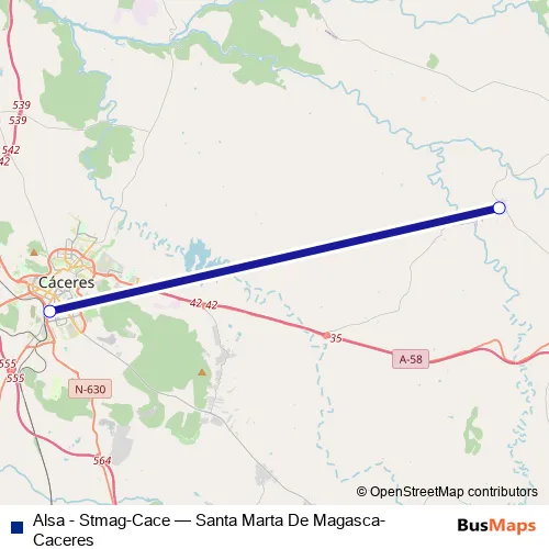 See why over 2 million users trust and consider busmaps.com as the best public transport website. busmaps gives you Santa Marta de Magasca Buses suggested routes, real-time bus tracker, line route maps in Santa Marta de Magasca, and helps to find the closest Alsa - Stmag-Cace bus stops near you. No internet available? Download an offline PDF map and bus schedule for the Alsa - Stmag-Cace bus to take on your trip.