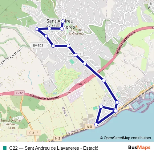 Click here to view the nearest C22 - Sant Andreu de Llavaneres - Estació bus stop.