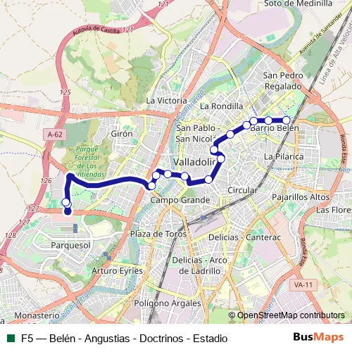 Bus F5 - Belén - Angustias - Doctrinos - Estadio in Valladolid: Stops & Timetable