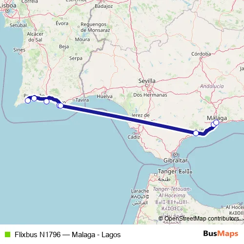 Bus Flixbus N1796 - Malaga - Lagos in Faro: Stops & Timetable