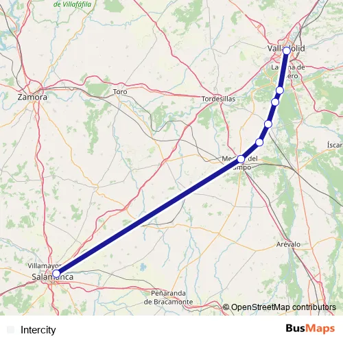 The first stop of the Intercity rail route is Valladolid and the last stop is Salamanca. Intercity is operational during everyday.