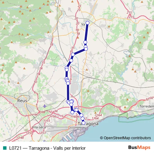 The first stop of the L0721 bus route is Valls (estació d'autobusos) and the last stop is Tarragona (estació d'autobusos). L0721 (Tarragona - Valls per interior) is operational during everyday.
