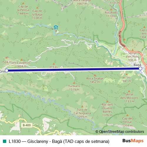 Bus L1830 - Gisclareny - Bagà (TAD caps de setmana) in Baga: Stops & Timetable